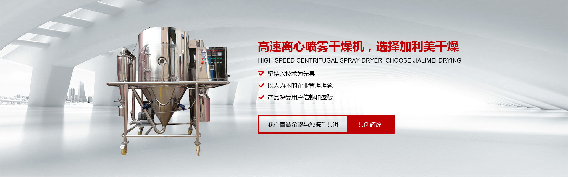 常州市加利美干燥設(shè)備有限公司是從事噴霧干燥機(jī),閃蒸干燥機(jī),雞精生產(chǎn)線(xiàn)和制粒機(jī)械的研究、開(kāi)發(fā)及制造的專(zhuān)業(yè)性廠(chǎng)家,是目 前國(guó)內(nèi)生產(chǎn)干燥設(shè)備品種較多、規(guī)格較全的企業(yè)。 我公司吸收國(guó)內(nèi)外的先進(jìn)技術(shù)與經(jīng)驗(yàn),嚴(yán)格按國(guó)家GMP的要求設(shè)計(jì)、開(kāi)發(fā)、生產(chǎn)、安裝和服務(wù)于一體,同時(shí)嚴(yán)格按照ISO9001國(guó)際質(zhì)量體系標(biāo)準(zhǔn)實(shí)施,確保了產(chǎn)品質(zhì)量。在干燥設(shè)備的開(kāi)發(fā)、研究中不斷地創(chuàng)新及改造,設(shè)計(jì)制造了一系列工藝進(jìn)步且節(jié)能的產(chǎn)品。